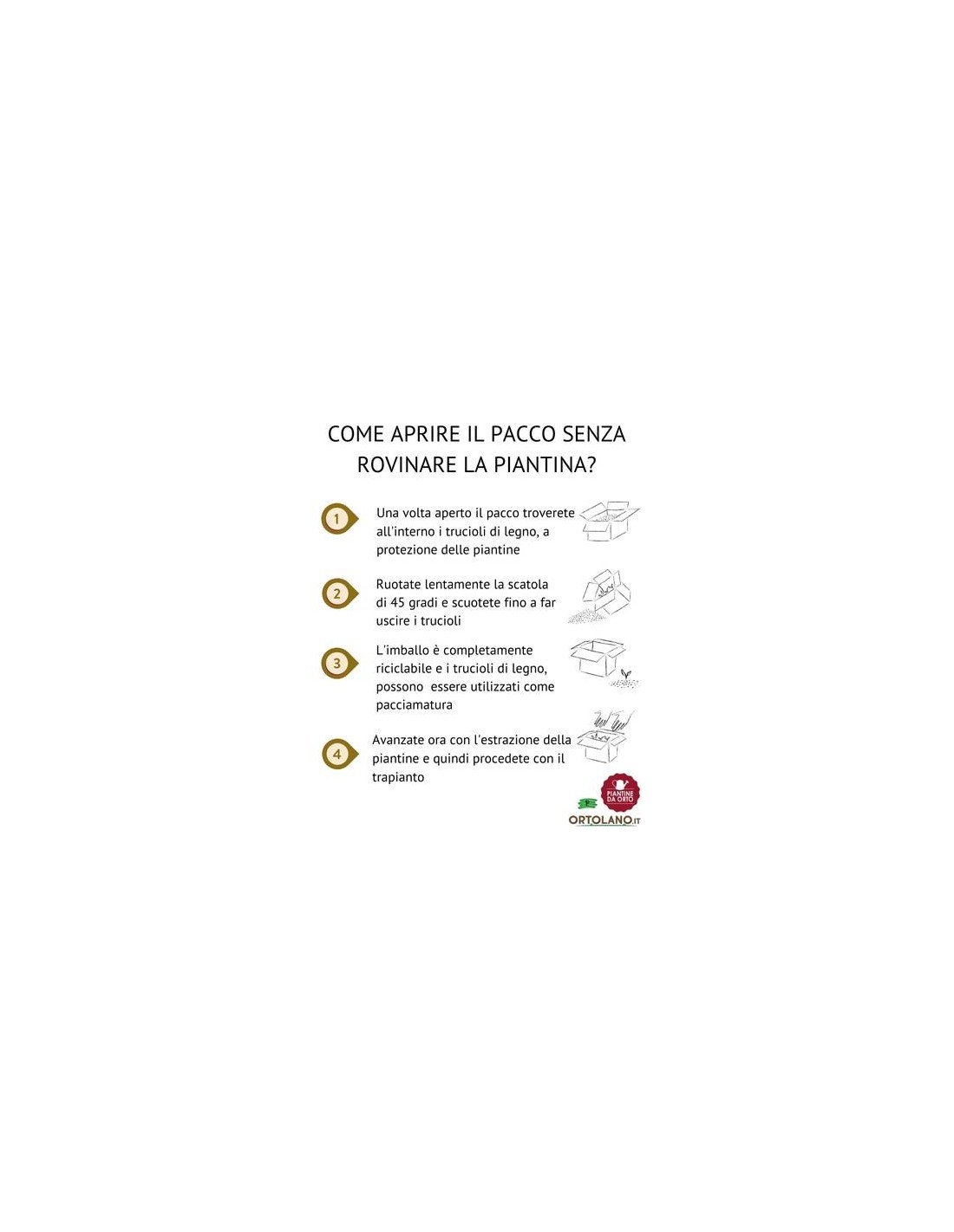 Siamo stati la prima azienda in Italia a vendere piantine da orto e tanto altro online. Questo grazie al sistema di packaging da noi brevettato, nato appositamente per garantire che le piantine acquistate arrivino integre e sane a destinazione. Questo imballaggio ideale per la vendita online delle piantine da orto utilizza i trucioli di legno traspiranti e naturali in grado di agevolare il trasporto della piantina e assicurare che questa ti arrivi integra e dall’aspetto ottimale, come se l’avessi acquistata al vivaio. Inoltre il truciolo è riutilizzabile come pacciamante e ammendate.